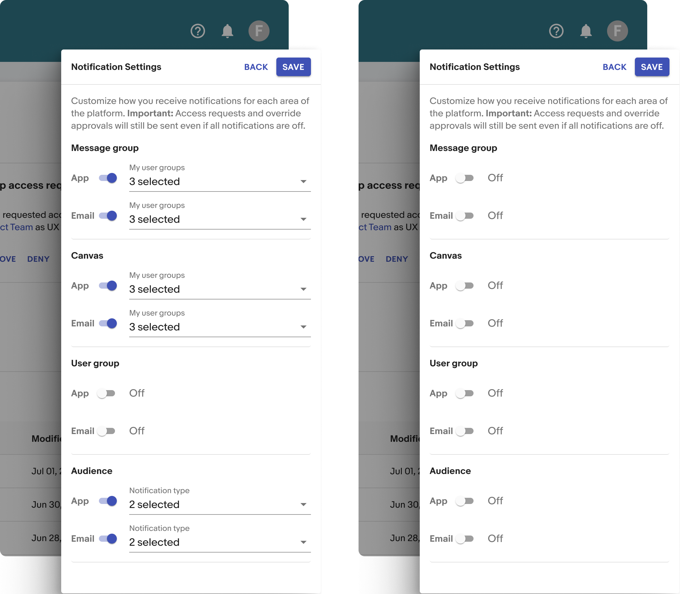 Users needed a centralized place to view and manage platform notifications, as they had previously relied solely on email notifications. To solve this, we designed and built a notification center that consolidated notifications from various areas of the platform, using color-coding to indicate different levels of urgency. Later in the year, due to popular demand, we introduced a settings feature, enabling users to customize which notifications they wanted to receive.